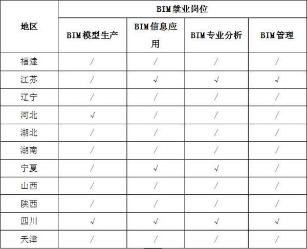3、就業(yè)崗位分布。從11個(gè)省市的BIM就業(yè)崗位分布來(lái)看,不同地區(qū)的企業(yè)對(duì)BIM人才的崗位需求也各不相同,BIM技術(shù)應(yīng)用發(fā)達(dá)的地區(qū)更需要能將BIM技術(shù)與生產(chǎn)過(guò)程融合的復(fù)合型人才,不局限于BIM建模工作,例如江蘇省企業(yè)招聘的人員以BIM信息應(yīng)用,BIM專(zhuān)業(yè)分析和BIM項(xiàng)目管理為主。
